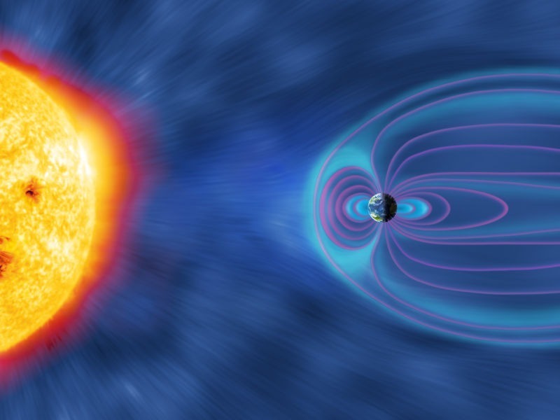 Das Magnetfeld der Erde und die Strahlung der Sonne.