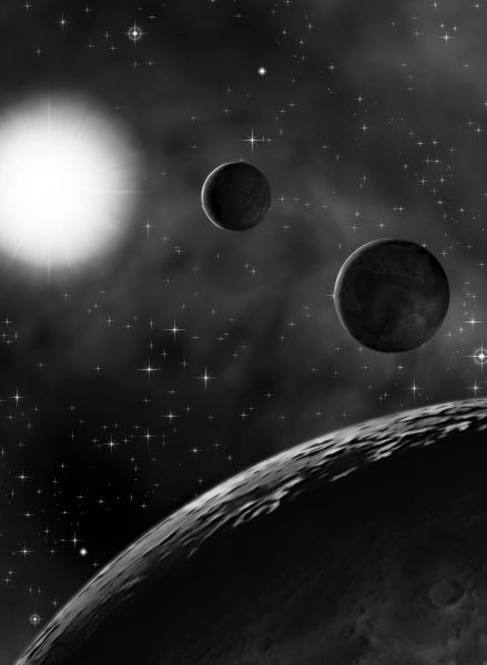 Im vergangenen Jahr habe ich den Science Fiction Autor Hubert Haensel getroffen. Im Perryversum ist er nicht nur für die Silberbände und Risszeichnungen zuständig, sondern auch für den Perry Rhodan Report. Und so kam es, das er mich um eine Illustration gebeten hat! Da der Innenteil der Perry Rhodan Hefte nur in schwarzweiß gedruckt wird, habe ich mein Space-Art Bild gleich in Graustufen angelegt: