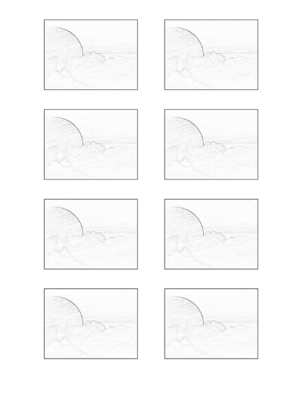 Danach habe ich in gimp eine Datei im Format DIN A4 erstellt und die Liniengrafik mehrfach darauf platziert, abgespeichert und vier mal mit meinem neuen Tintenstrahldrucker ausgedruckt.