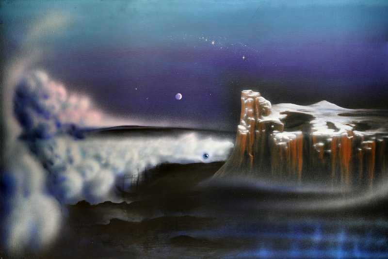 Durch die Fernsehübertragung der Mondlandungen in den frühen 70er Jahren, wurde mein Interesse am Phantastischen geweckt. Zur Malerei kam ich über Bücher und Filme des SF-Genres. Ich wollte selbst solche Bilder von Raumschiffen und fremden Wesen besitzen!