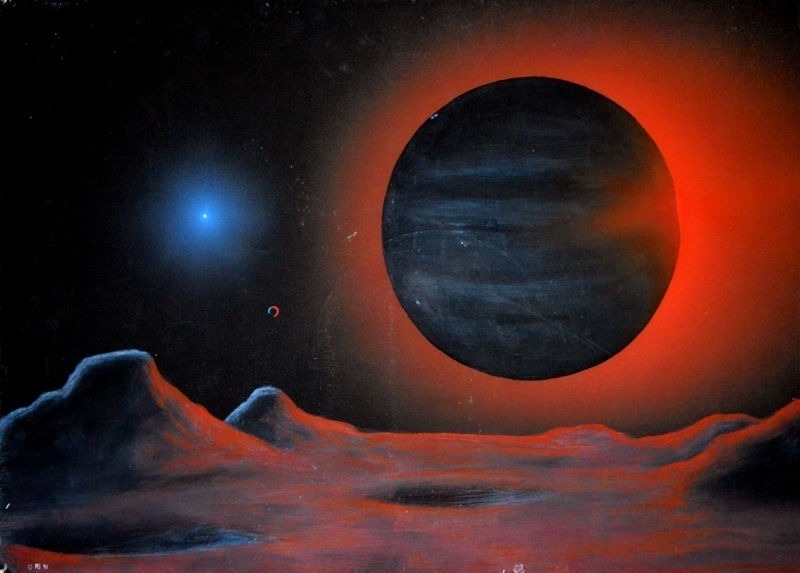Dieses Space Art Motiv entstand Anfang der 90er Jahre an meinem alten Amiga 2000. Ich weiß nicht mehr ob ich es mit DeluxePaint oder XiPaint gemalt habe.