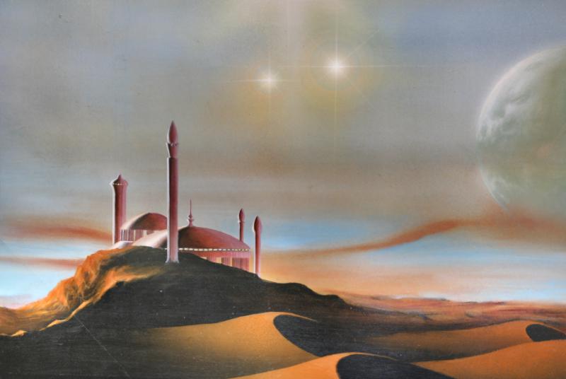 Diese Illustration wurde von den Mars-Romanen des Tarzan-Erfinders Edgar Rice Burroughs und orientalischer Architektur inspiriert.