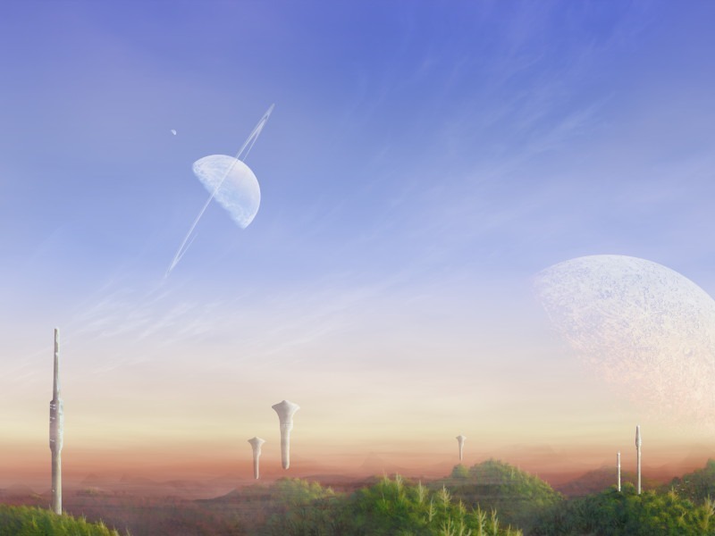 Eine bizarre, surreale Landschaft aus Eis und Schnee. Am höchsten Gipfel erstrahlt ein kaltes Licht. Frühwerk Nummer 82 aus dem Jahr 1982.