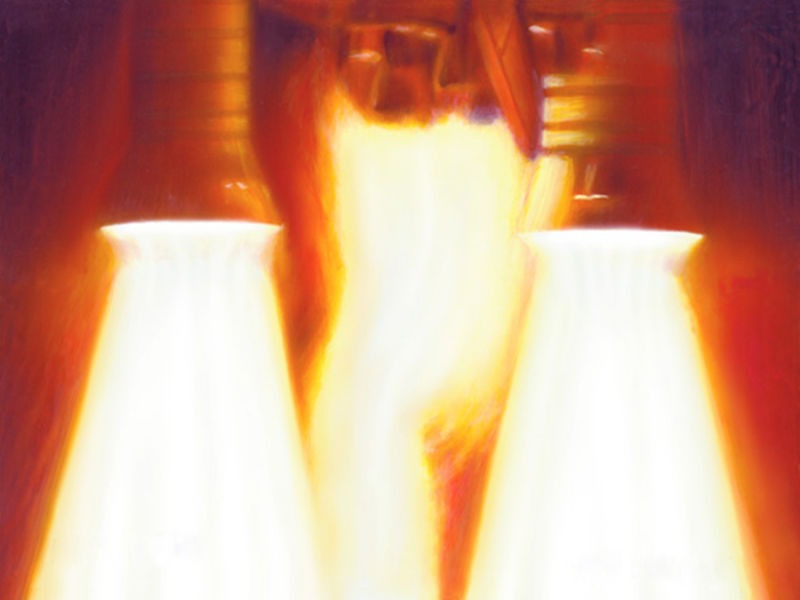 Mischtechnik auf Hartfaserplatte, 33,5 x 55 cm, 1998.