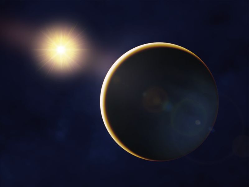 Surreale Darstellung eines frühen Sonnensystems. Stern und Planeten entstehen aus einer Nebelwolke aus Gas und Staub.