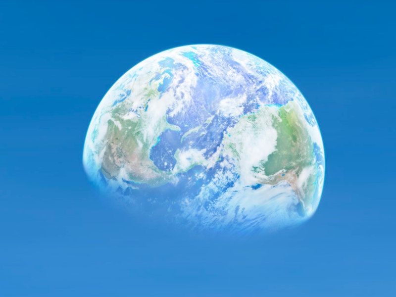 Die Erde, wie man sie am Himmel des neu gestalteten Mondes sehen würde. Zu erkennen sind Nord- und Südamerika.