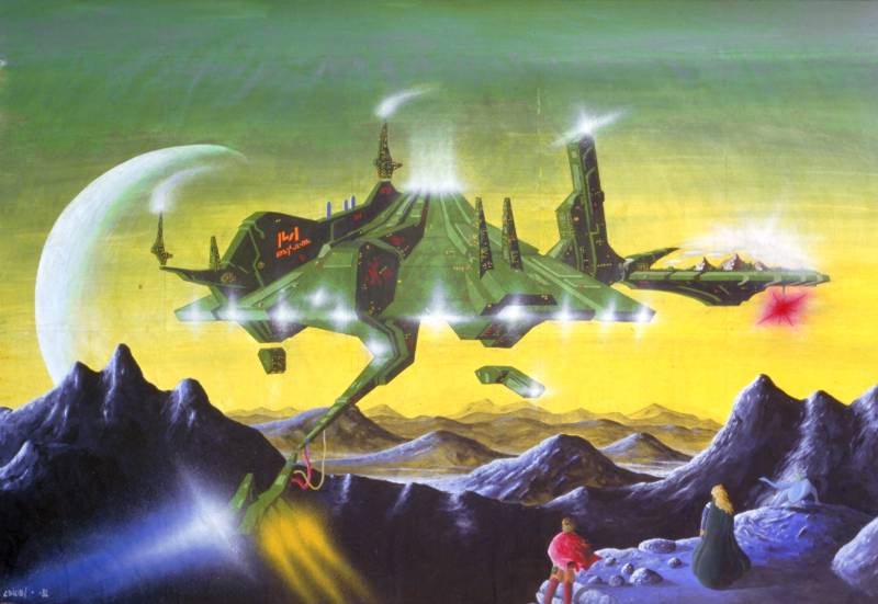 Ich habe in meinem Archiv das Bild einer schwebenden Stadt gefunden! Schon im Jahre 1981 hatte dieses Science Fiction Motiv gemalt, und zwar ohne Airbrush. Das Foto ist etwas verwackelt.